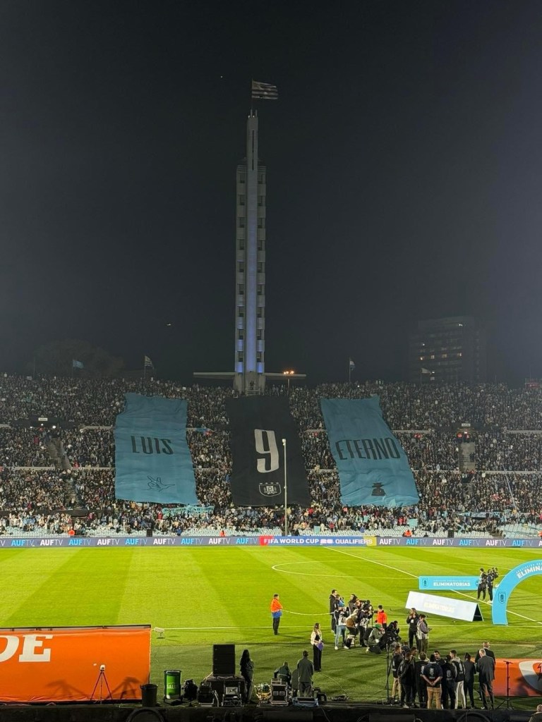 💙 Uruguay fans’ tribute for Luis Suárez as he’s playing his final game with the national team! 🇺🇾
